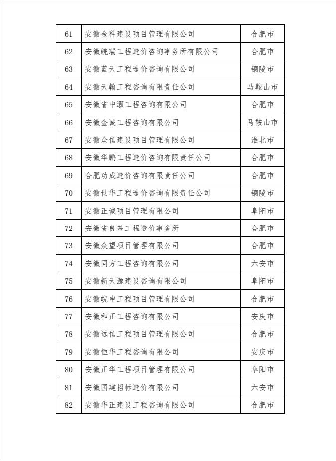 关于公布2022年度安徽省工程造价咨询