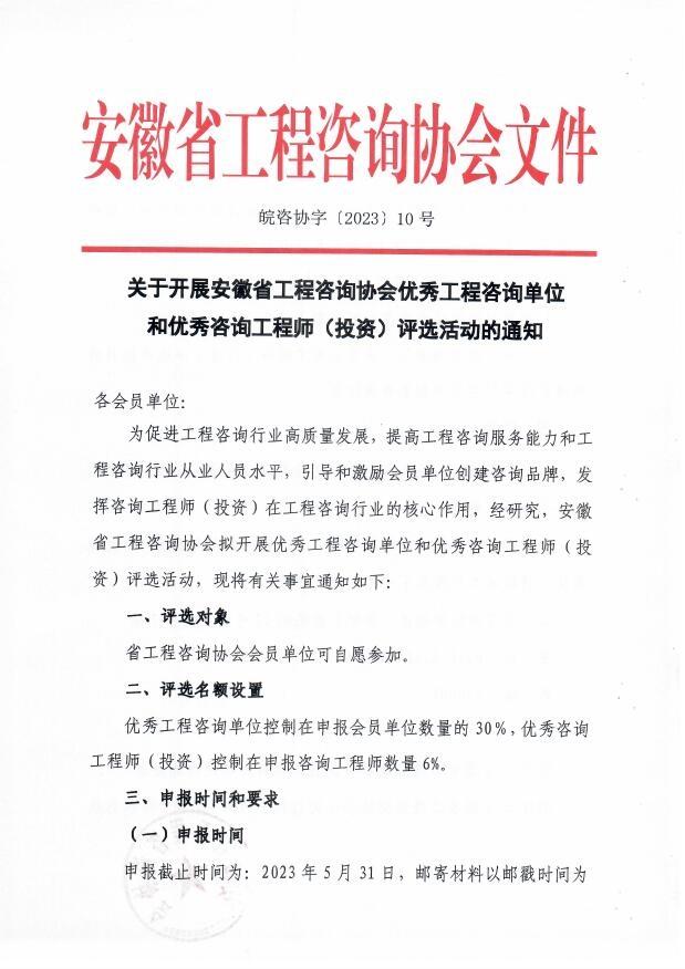 关于开展省咨协优秀工程咨询单位和优秀咨询工程师评选活动的通知