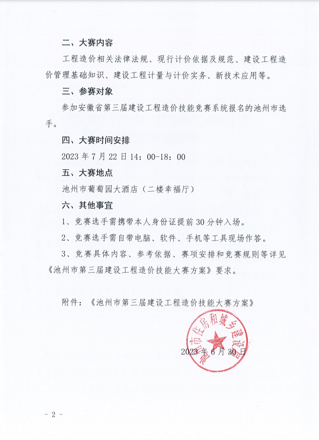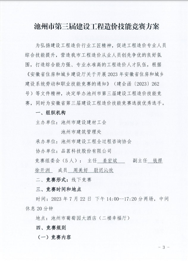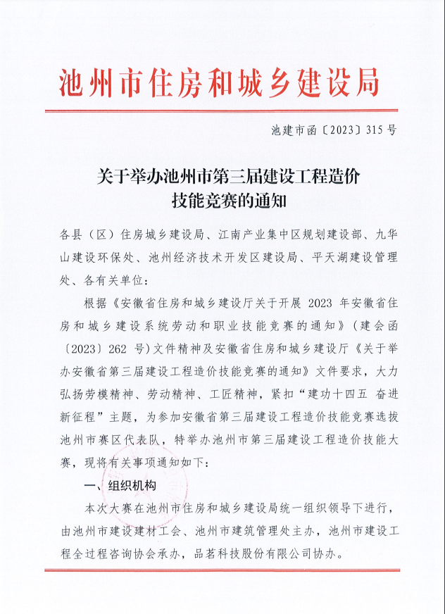 关于举办池州市第三届建设工程造价技能竞赛的通知