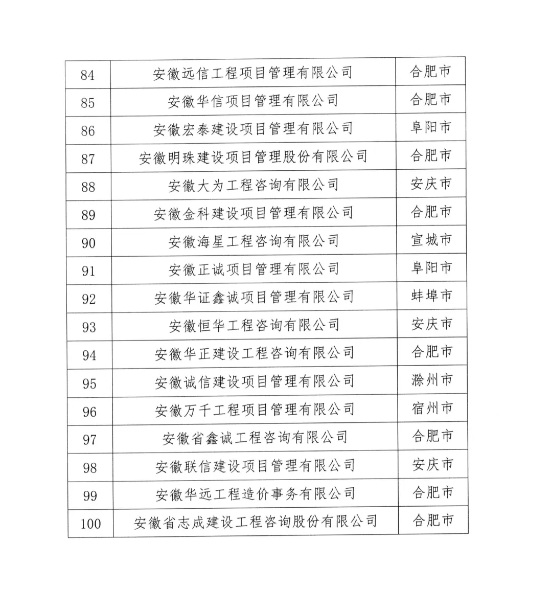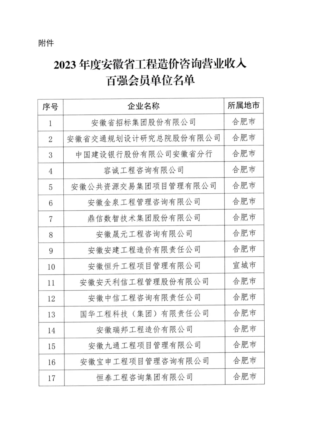 安徽省建设工程造价管理PA视讯关于公布2023年度安徽省工程造价咨询营业收入百强会员单位的通知