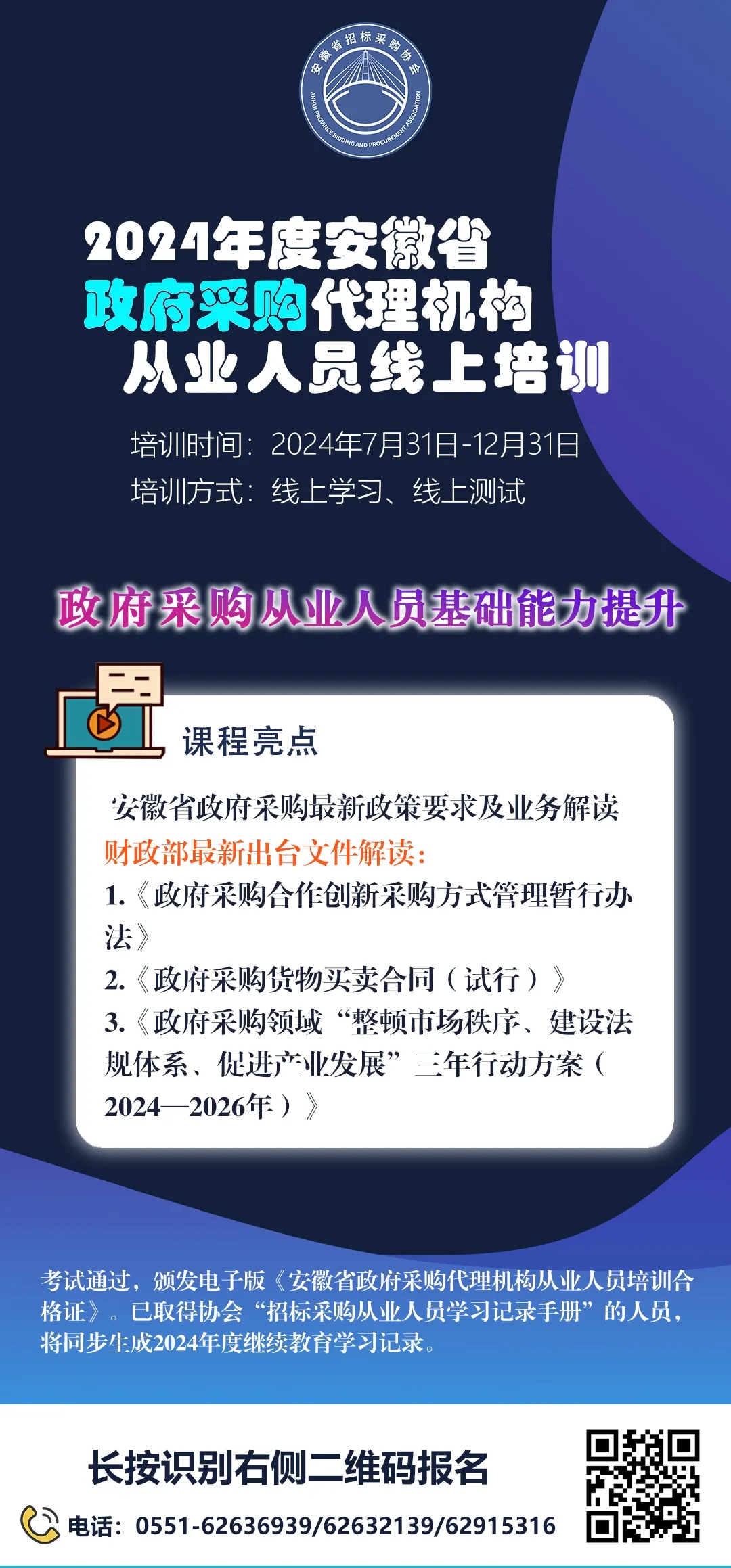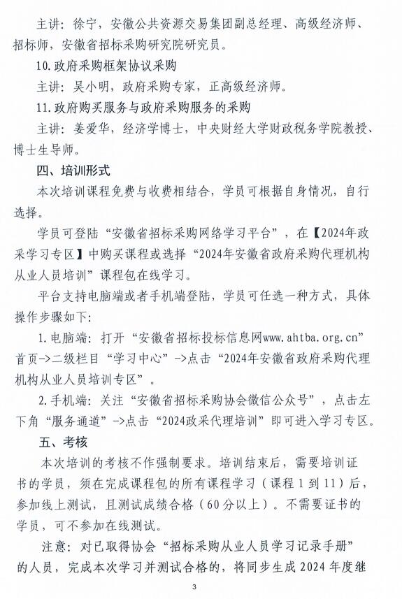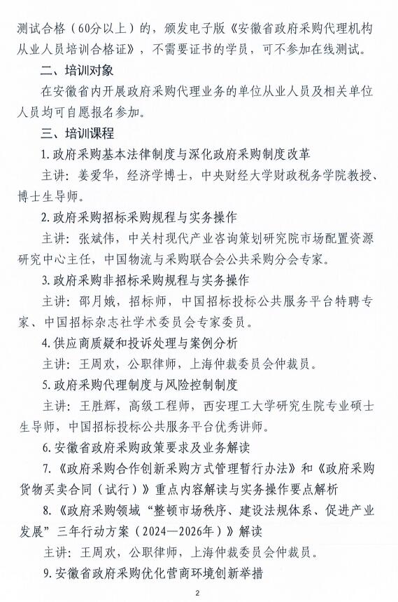 安徽省招标采购PA视讯关于2024年度安徽省政府采购代理机构从业人员培训的通知