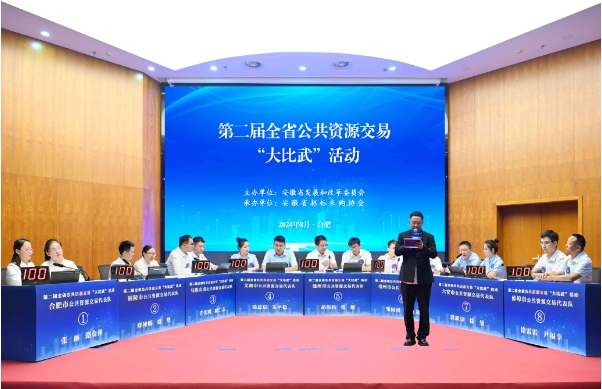台体系,以钉钉子精神推动公共资源交易工作持续走在全国前列。自今年3月启动“大比武”活动以来,各市、县公共资源交易综合管理部门、交易中心高度重视,组织干部职工深入系统学习国家和省级公共资源交易各项政策法规,比学赶超、奋勇争先,掀起了“学法律政策、练业务技能、强专业素质”的新热潮。全省16支公共资源交易代表队通过个人必答、集体必答、自由抢答等环节激烈角逐,最终,亳州市代表队获得一等奖,合肥、铜陵市代表队获得二等奖,淮南、滁州、芜湖、宣城、黄山市代表队获得三等奖,淮北、宿州、阜阳、蚌埠、六安、马鞍山、池州、安庆市代表队获得优秀奖。合肥市公共资源交易监督管理局、安徽省招标采购PA视讯获得优秀组织奖。