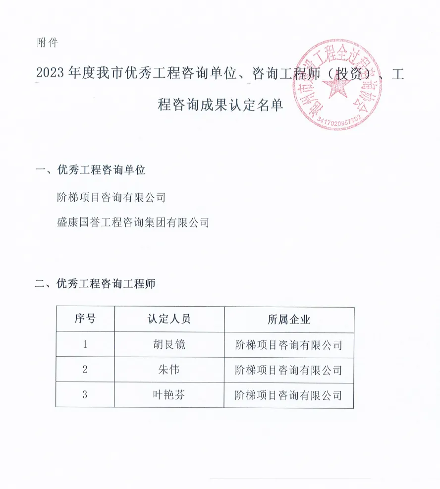 关于公布2023年度我市优秀工程咨询单位、咨询工程师(投资)、工程咨询成果认定名单的通知