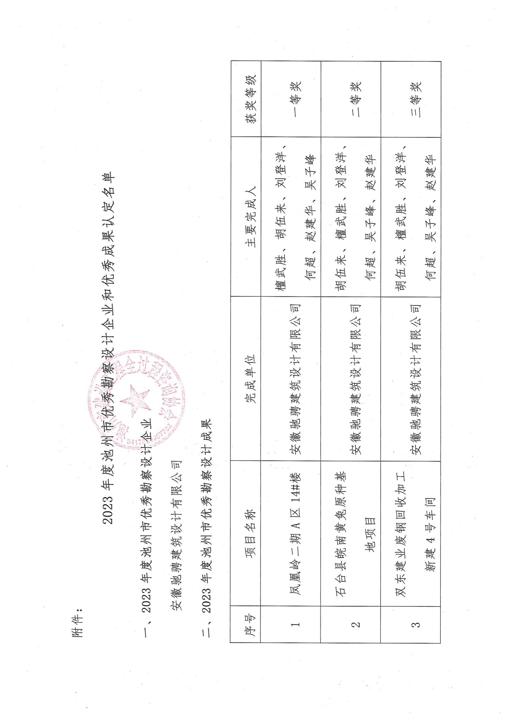 2023年度池州市优秀勘察设计企业和优秀成果认定名单的公示