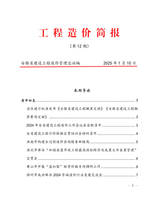 安徽省建设工程造价管理总站《工程造价简报》第12期