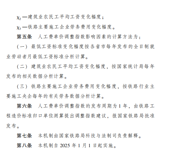 铁路工程造价标准人工费单价动态调整机制(试行)