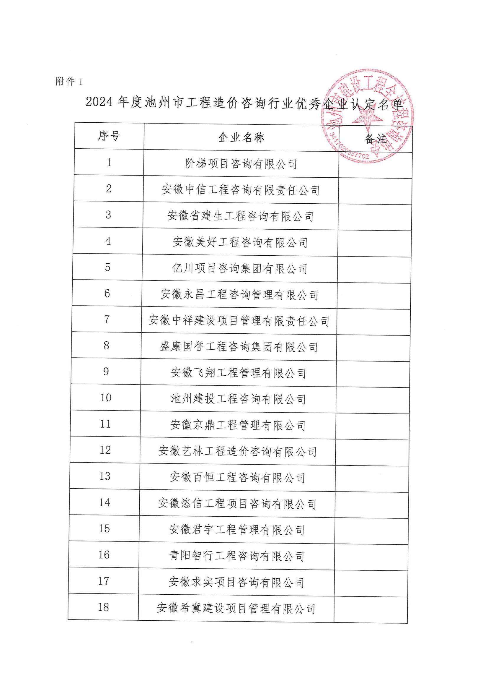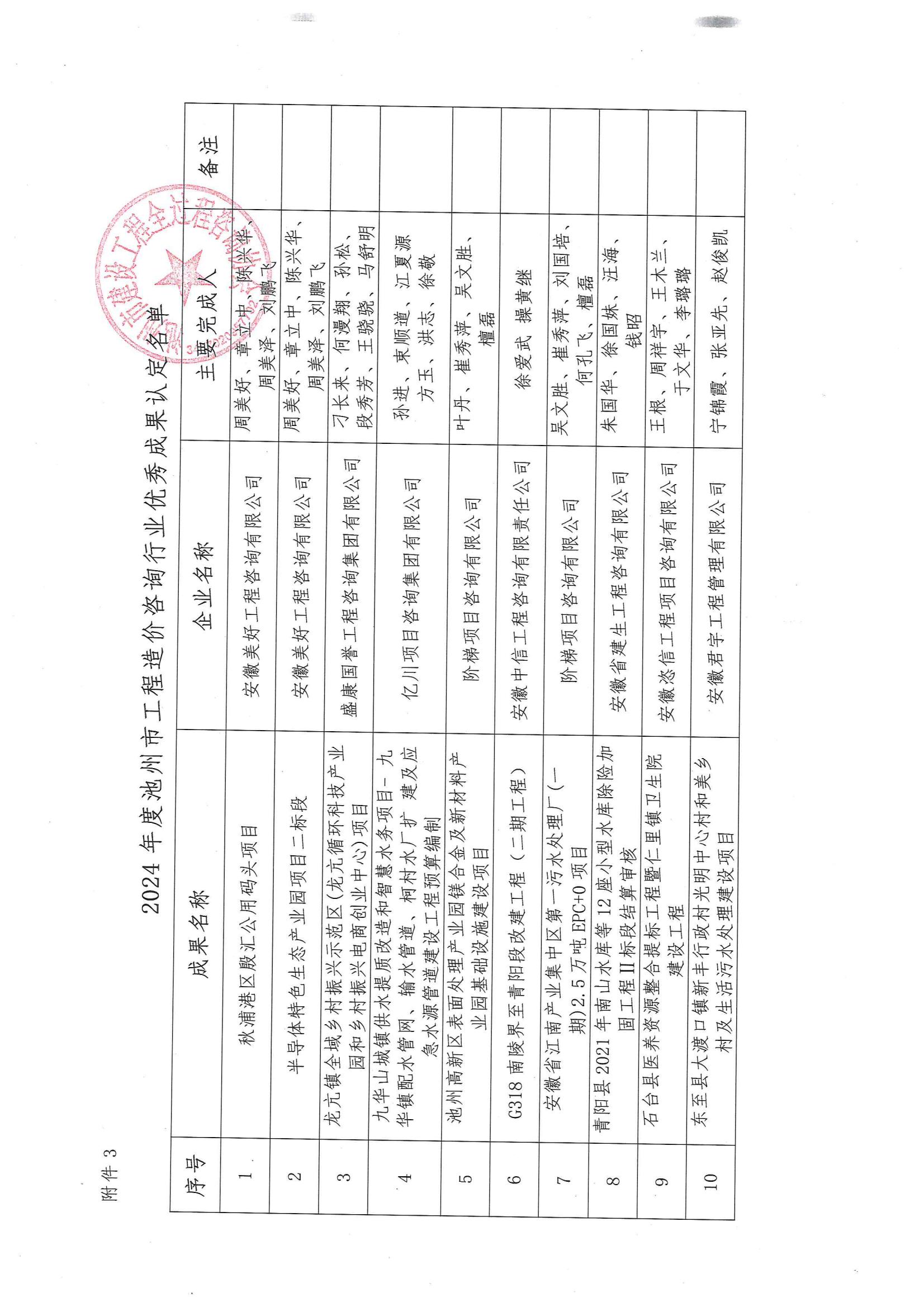 关于公布2024年度池州市工程造价咨询行业优秀企业、个人和优秀成果认定名单的通知