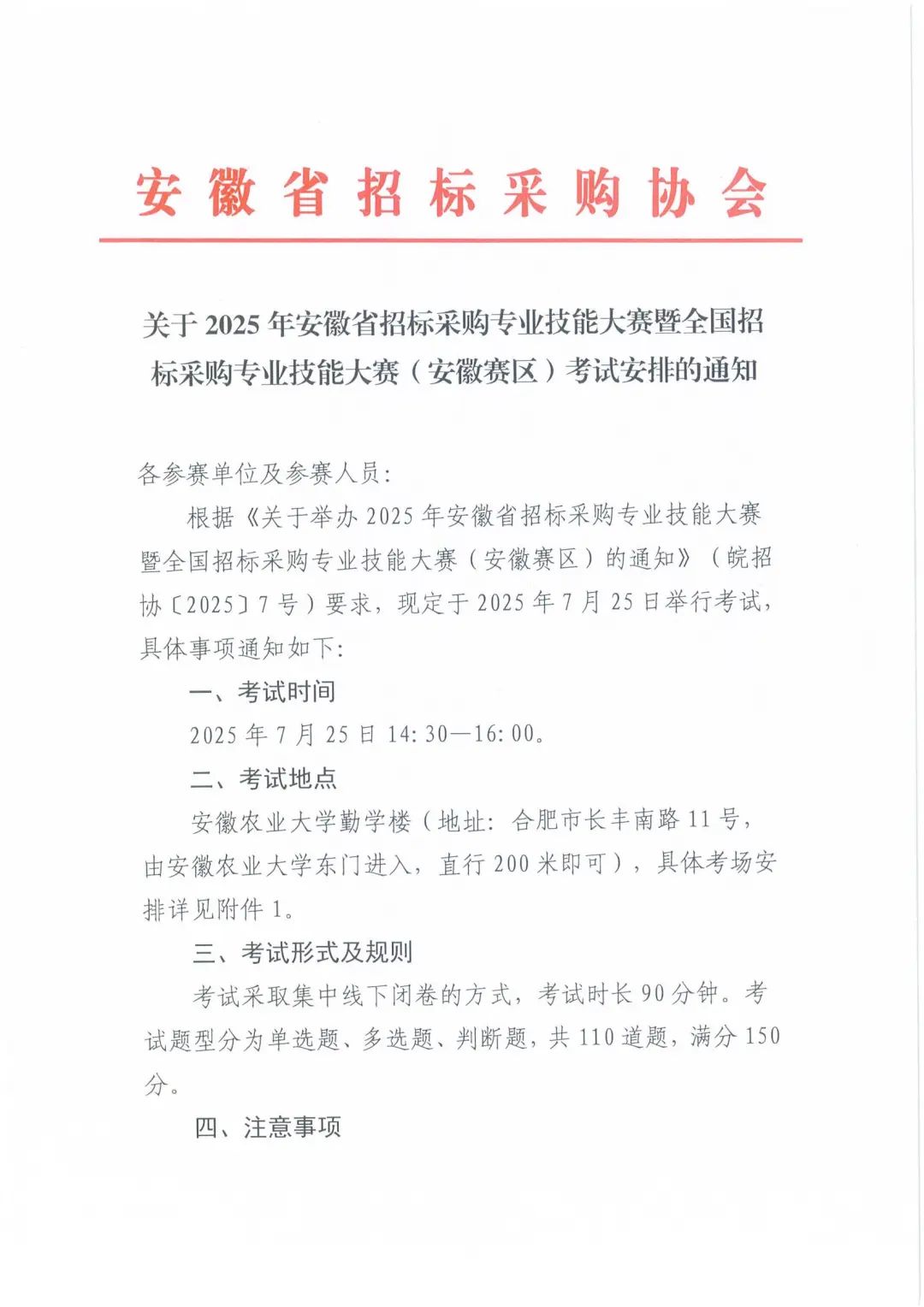 转 | 关于2025年安徽省招标采购专业技能大赛暨全国招标采购专业技能大赛(安徽赛区)考试安排的通知