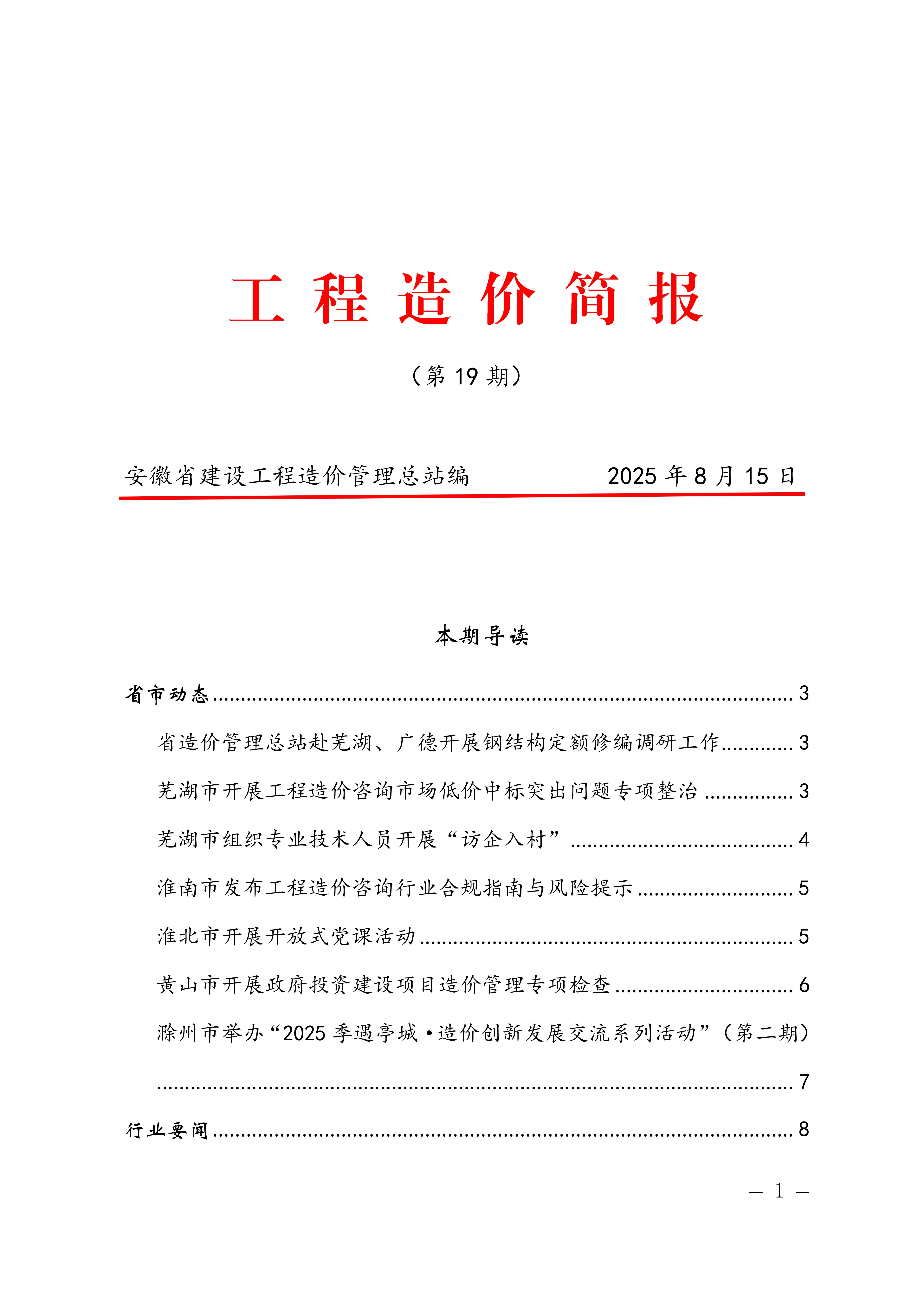 安徽省建设工程造价管理总站《工程造价简报》第19期