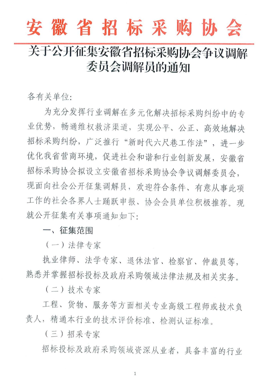转 |关于公开征集安徽省招标采购PA视讯争议调解委员会调解员的通知