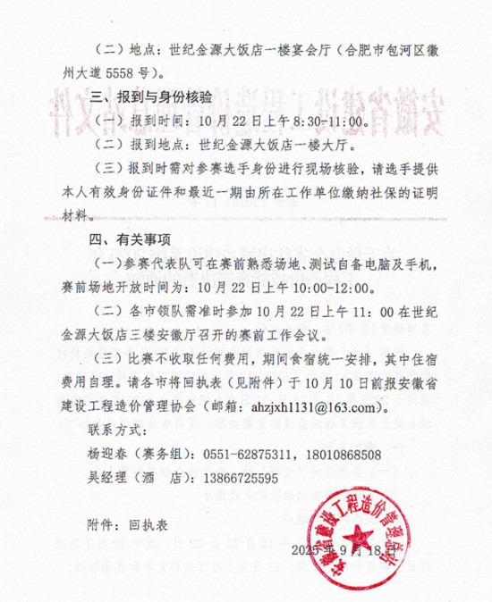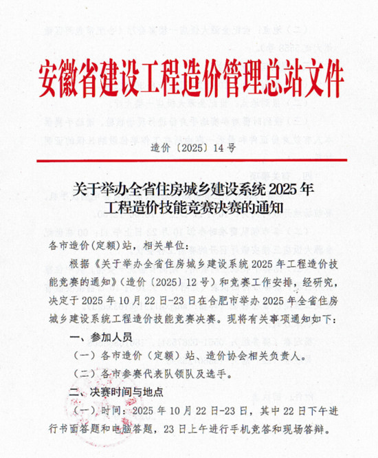 关于举办全省住房城乡建设系统2025年工程造价技能竞赛决赛的通知