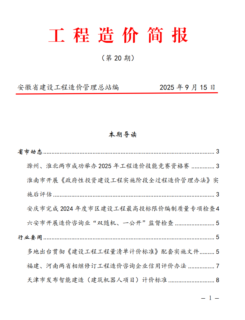 安徽省建设工程造价管理总站《工程造价简报》第20期