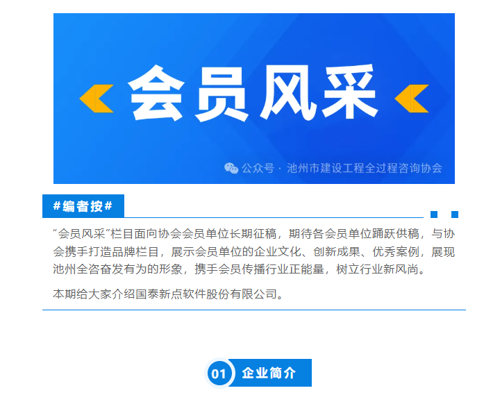 国泰新点软件股份有限公司(股票简称:新点软件,股票代码:688232)成立于1998年,是政企数字化整体解决方案提供商、国家鼓励的重点软件企业。公司围绕智慧招采、智慧政务、数字建筑三大核心业务领域,为各级政府部门、大型集团企业及相关行业单位提供从规划咨询、软件开发与智能设备研发、实施交付到持续运营维护的全方位服务。